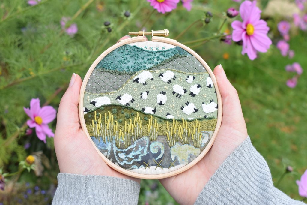 Beth is an embroidery and textile artist living on the edge of Ashdown Forest in East Sussex. She creates beautiful and tactile pieces of artwork using layers of pre-printed cotton fabrics which are then intricately embroidered and embellished with found or upcycled materials, trimmings and 'bits', to create fabulous textures and an overall landscape scene. These embroideries have been affectionately called ‘Stitchscapes’ and are described as “the art of painting with needle and thread”.Beth has created the brand, Dotty Textiles, and now runs a successful business producing Stitchscape kits and products, running workshops and giving talks about her style.