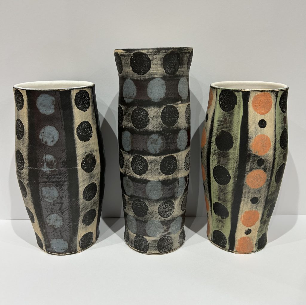 Decorative functional stoneware ranging from small condiment bowls to large urns.Prices from £15 to £1000