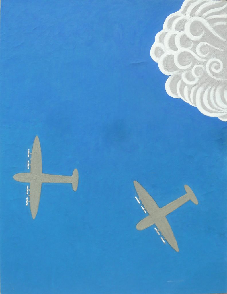 "While jogging by the river one hot day in Japan, I heard a droning above me and on looking up saw these two JASDF planes on a training flight from a nearby base. One seemed to be following the other as they slowly turned to head home - like a parent and child." - Paul Houlton50 original paintings,drawings, prints and sculpture on display in a working artist's studio, a former chapel, just off the Kingsway on Hove seafront.