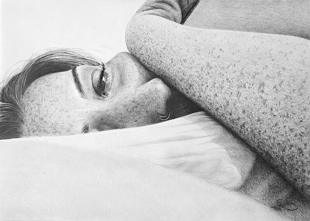 Emily Brady is a self-taught visual artist from Bristol, based in Amsterdam for the last 10 years. Her practice centres on freehand pencil drawings, with close attention to detail that captures atmosphere and emotion.Emily observes the world through a sensitive lens, which presents itself in the precision of her execution and her ability to find beauty in simplicity. This results in recurrent themes of introspection, intimacy and identity. Her intention is to encourage viewers to see their own world sensitively and thus develop a stronger sense of calmness, gratitude and curiosity.