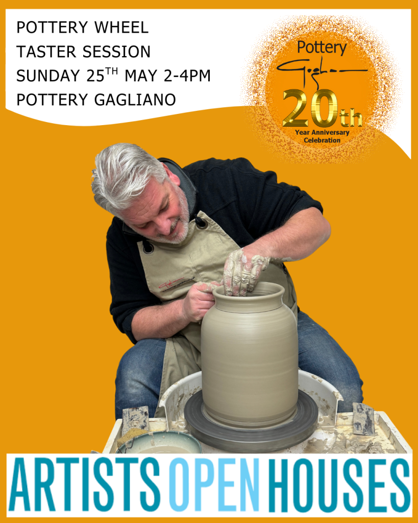 Join us for a special two-hour pottery wheel taster session led by master ceramicist Roberto Gagliano, celebrating the first weekend of the Artist Open House. With over 30 years of experience, Roberto will guide you through the magical process of throwing clay on the wheel in a relaxed, welcoming environment.
