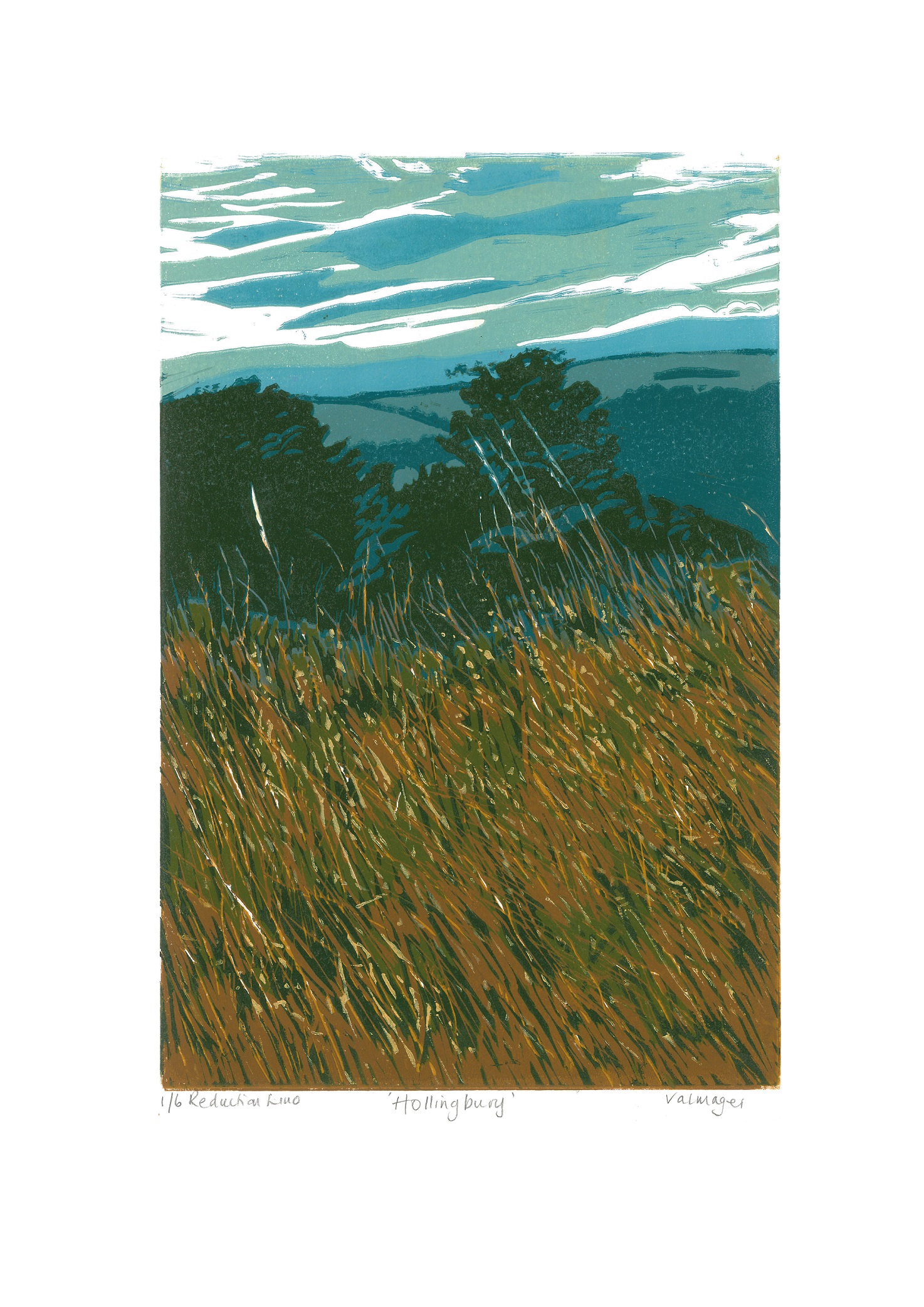 Val Mager will be exhibiting a range of different printmaking images, including a selection of reduction lino prints based on views of the Sussex Downs.