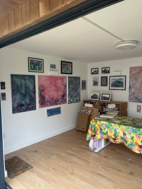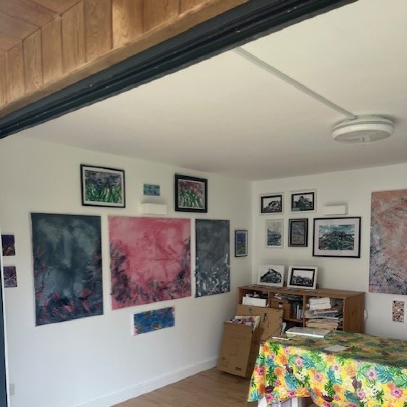Take your time to enjoy a lovely variety of artwork and relax in the garden with delicious refreshments. The artwork includes lively and layered abstract paintings, colourful prints and collages, dramatic figurative paintings, beautiful lacquered jewellery and fabulous mixed media pieces.