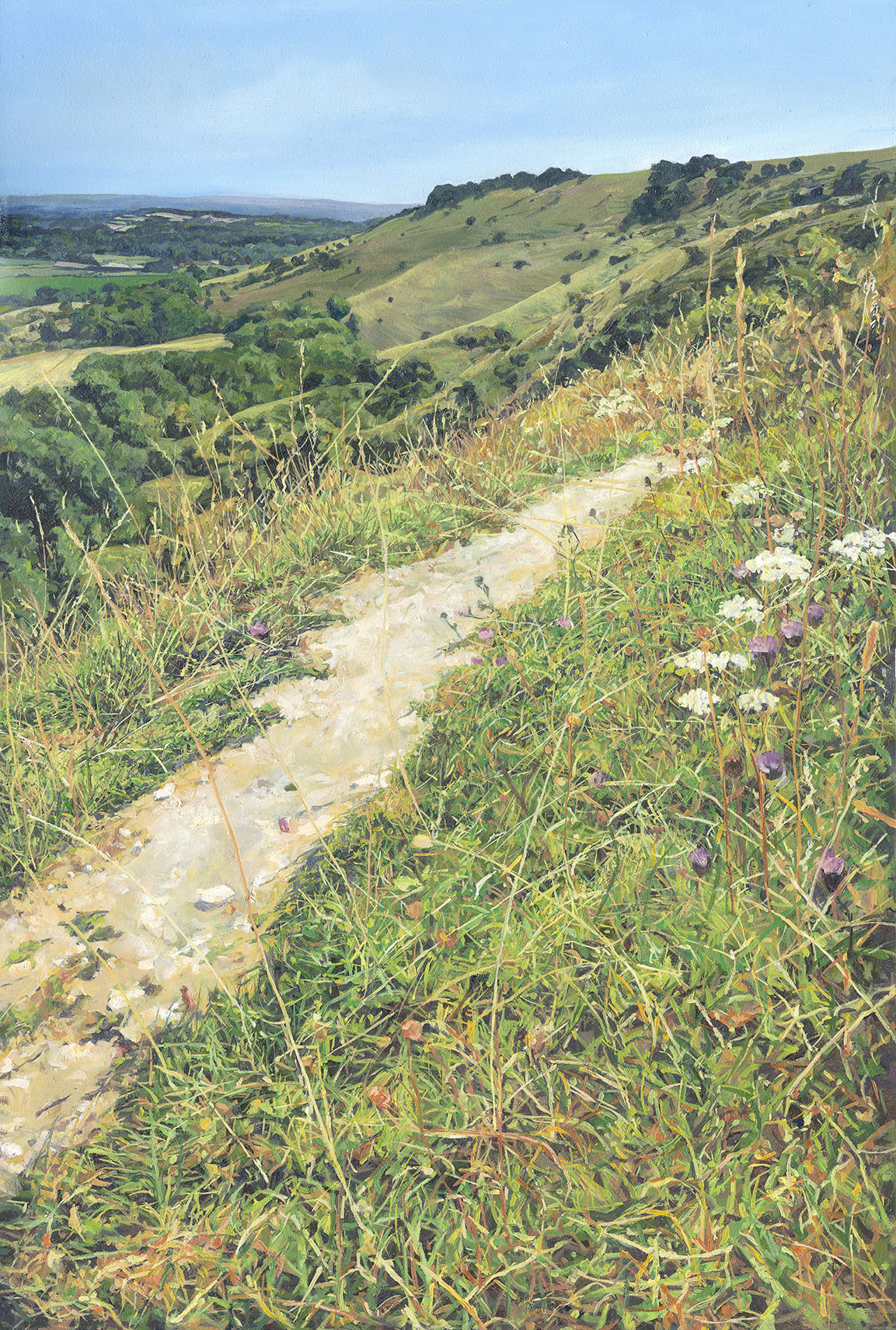 This painting was captured at the height of summer, the grass and cow parsley, is golden and crispy.
