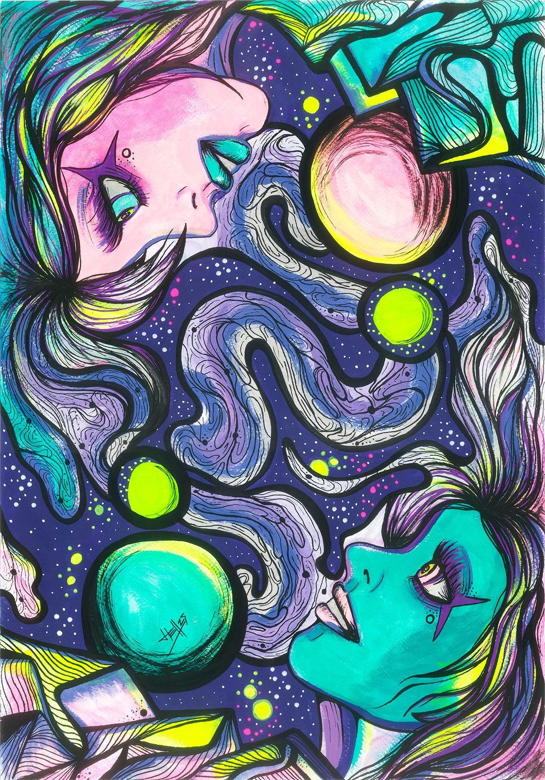 HK Artlabs invites you to experience the colourful art of Colombian born artist Hell Hanna. Her works are an intricate mix of abstract lines which have a visually chaotic effect inspired by psychedelia, geometry, science fiction, space…