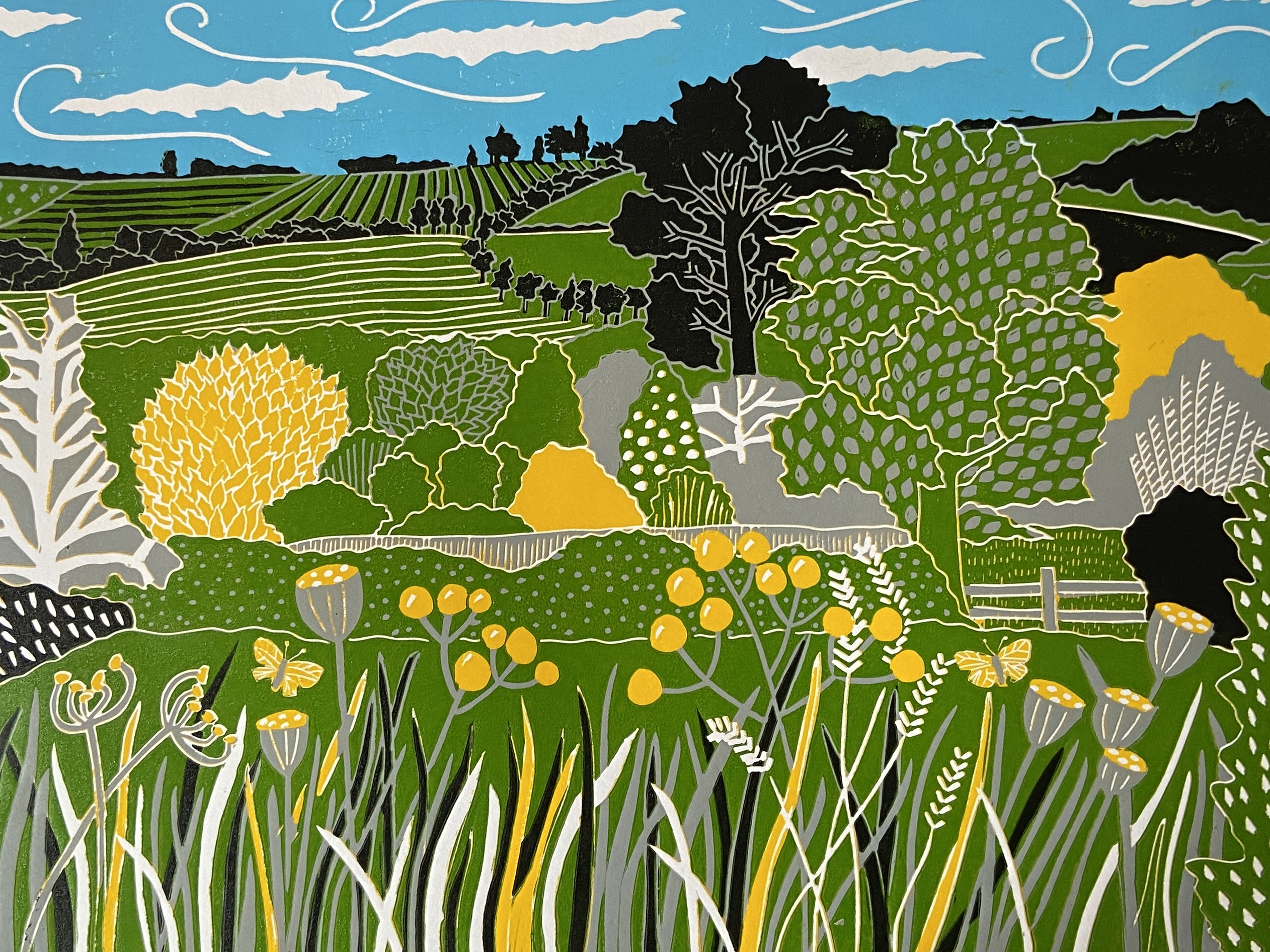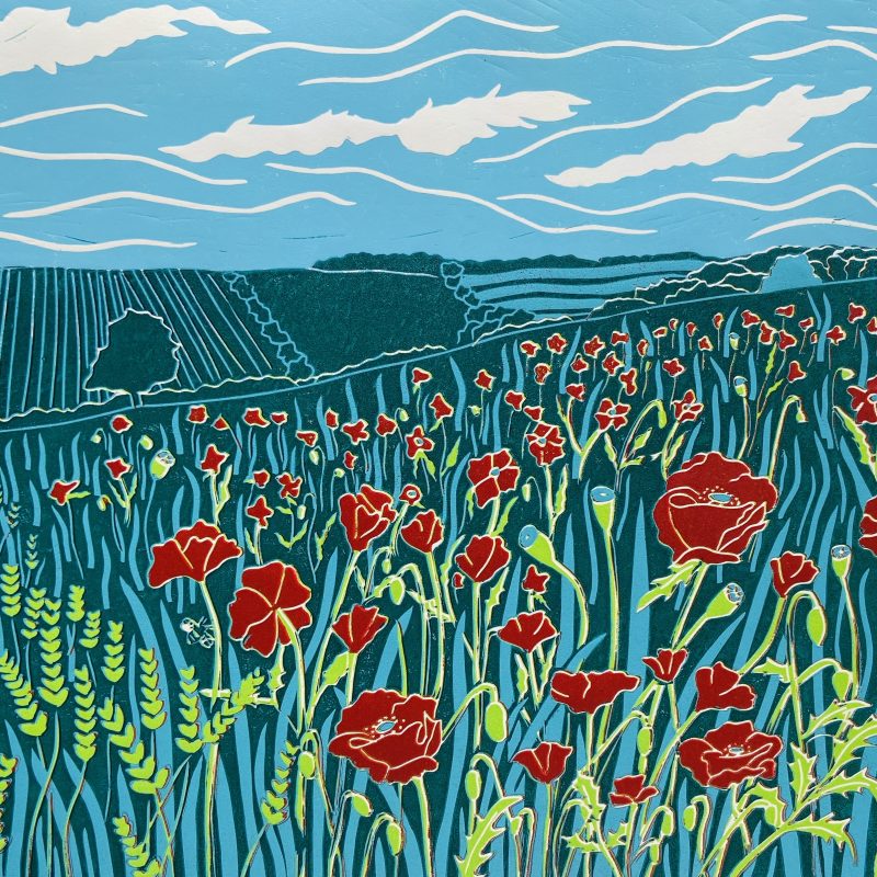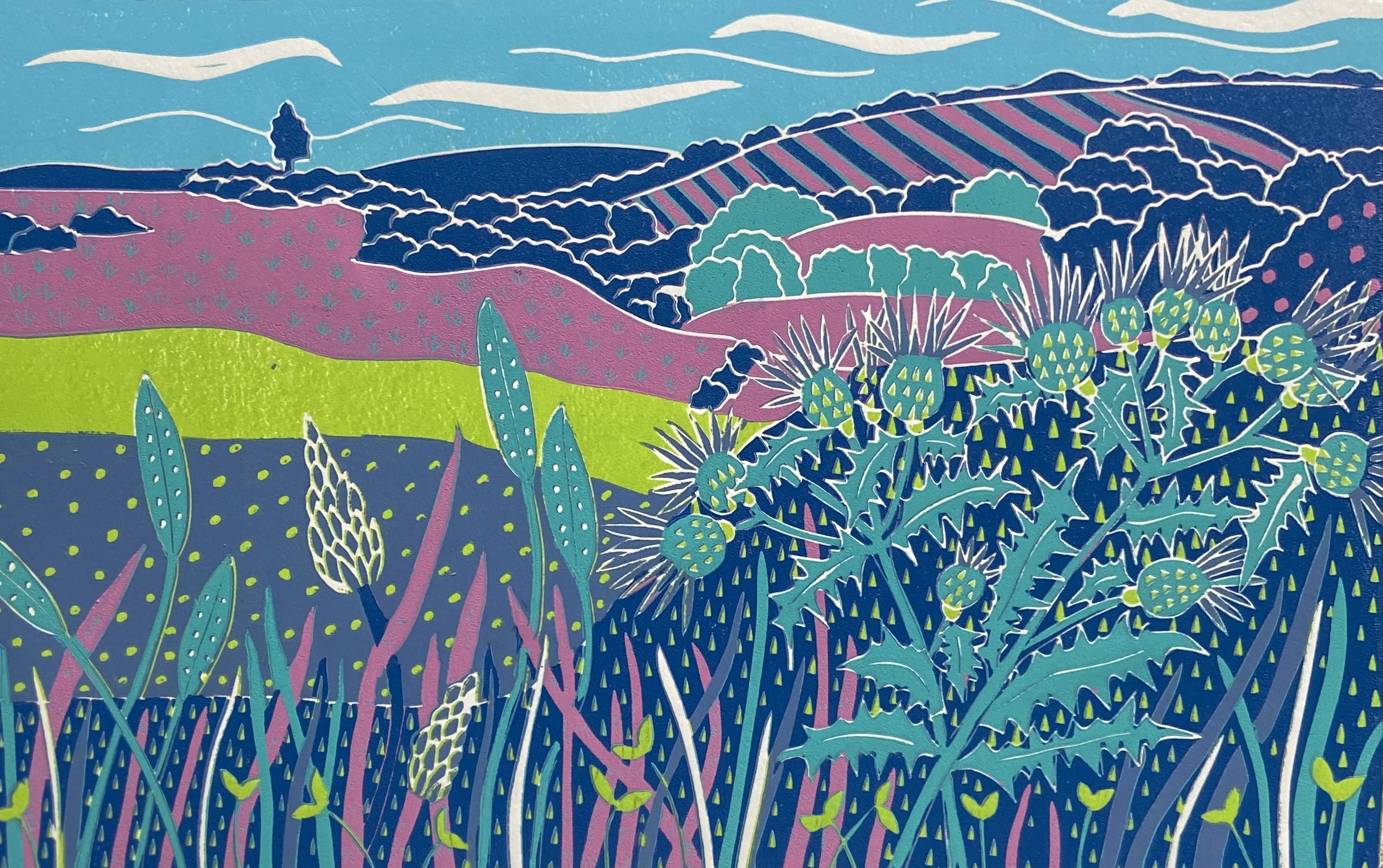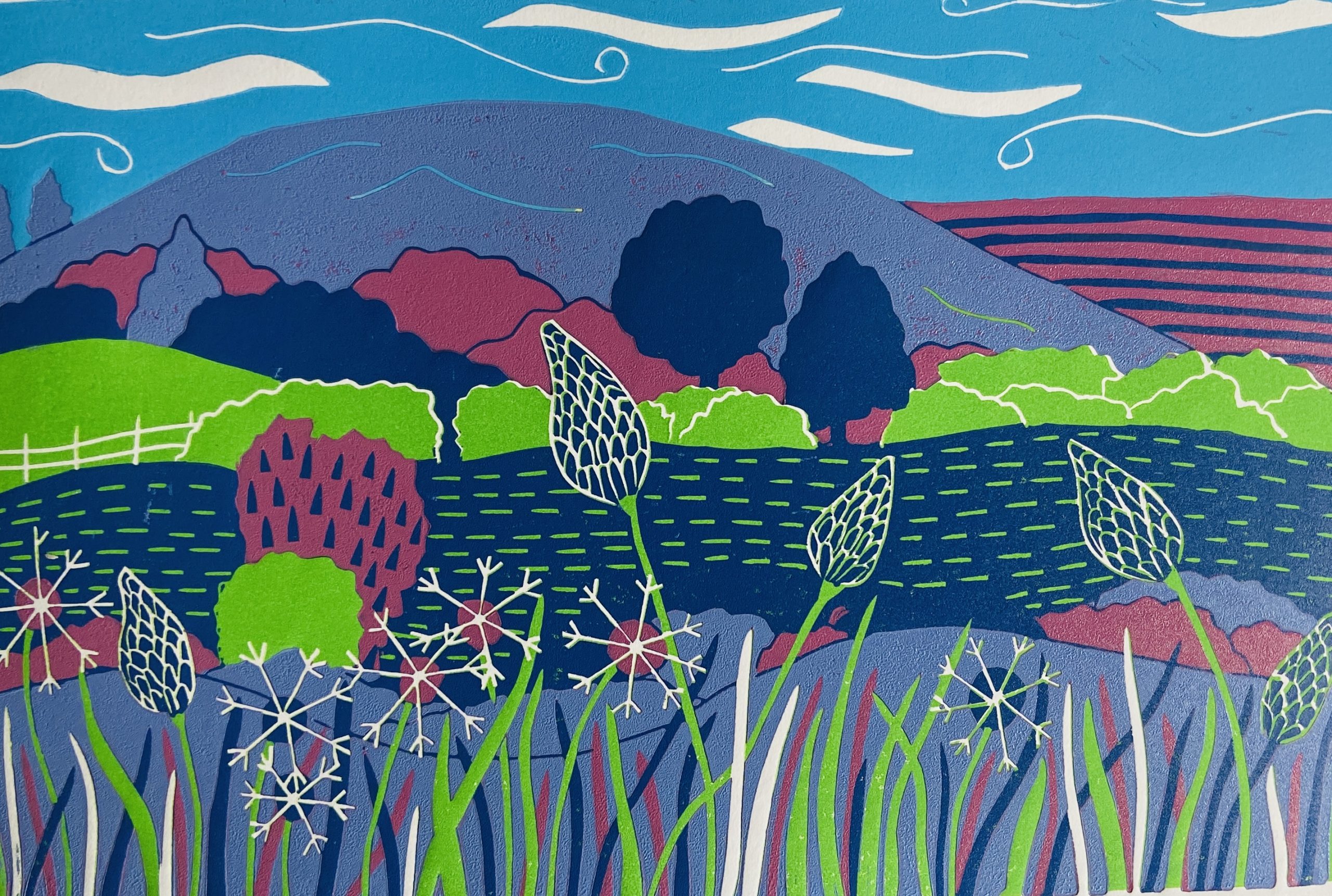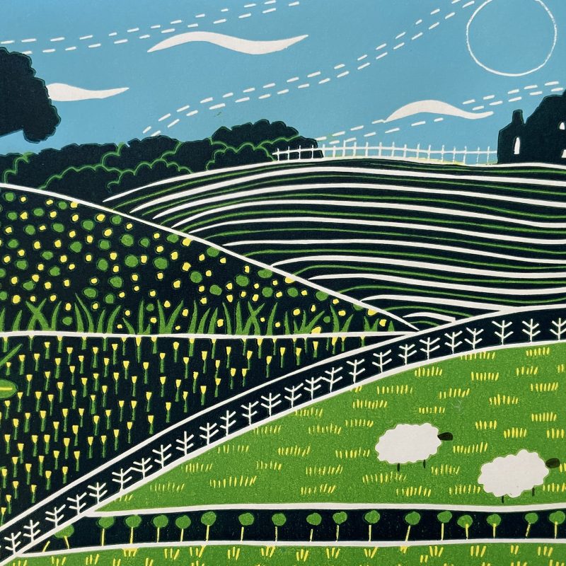 Sue’s greatest inspiration is the beautiful Sussex countryside where she lives. Working from Scots Pine Studios, in the village of Hassocks, she creates linocut prints and paintings using a combination of photography and sketching as well as drawing on her personal experiences and memories. Sue has a Fine Art Degree from the University of Brighton and mostly uses the reduction method of printmaking.