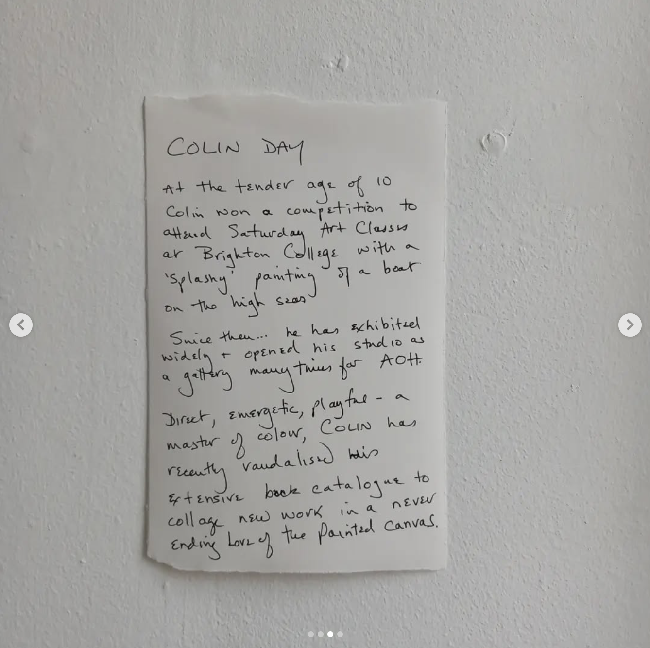 Colin Day Abstract painting, in a former Edwardian Ice house in the centre of Brighton. Expect playful shapes and colours in a light and airy white space. Colin has opened his studio in May for the Artists Open Festival since it started and is looking forwarding to welcoming you with a capsule collection of new work for 2025.