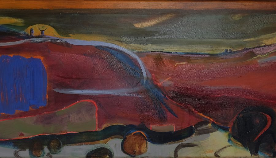 Chy Morvah host, Miranda Ellis, exhibits moody Ditchling landscapes with deer or not with deer and strolling evening sheep.