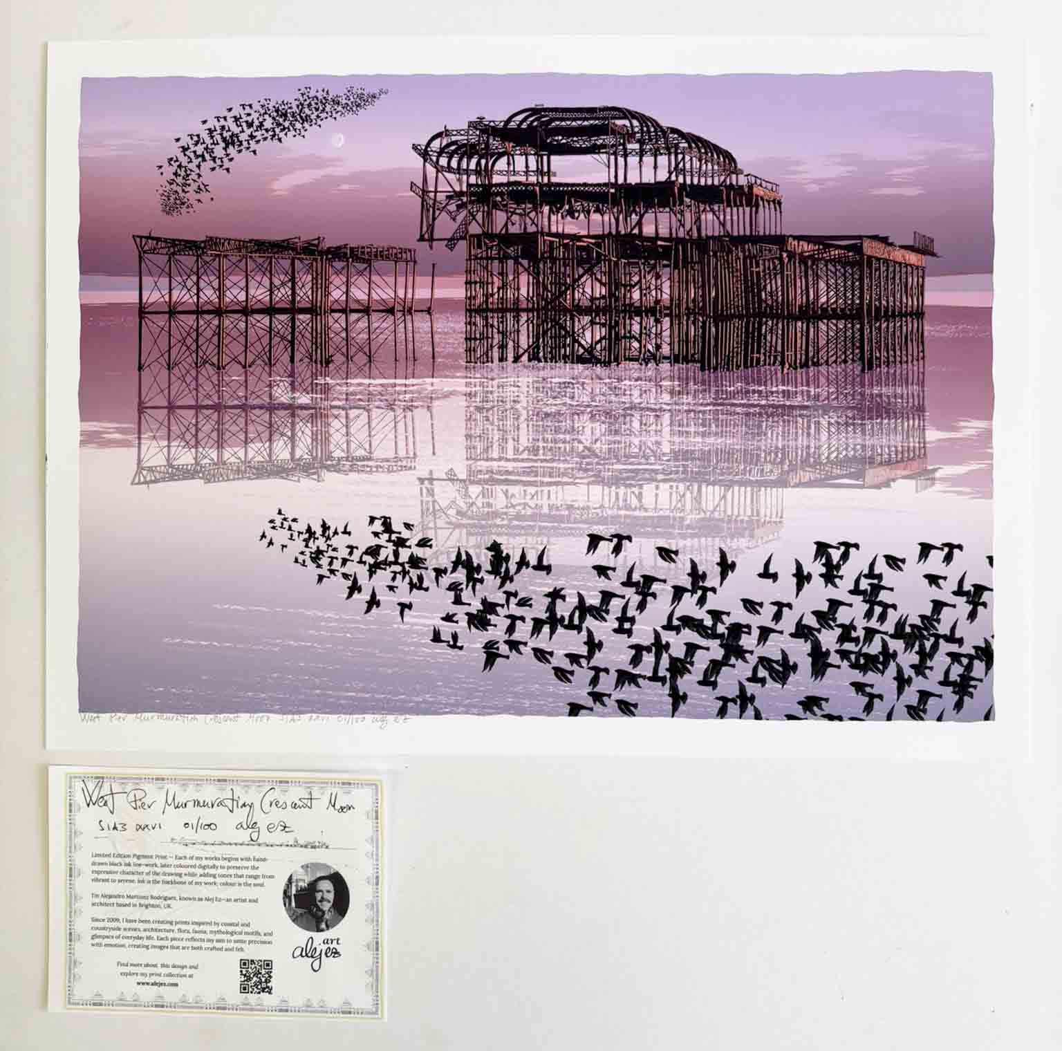 I am Alej Ez, shortened from Alejandro Martinez Rodriguez. I am an architect and printmaker from Seville, Spain, living and working in Brighton. I am the AOH 2026 brochure cover artist. My subjects include Sussex landscapes, the South Downs, the cliffs and cities, as well as architectural, floral, and storytelling scenes with people. I create pigment prints from hand-drawn monochrome ink drawings, to which I apply colour digitally, and issue them as limited editions.