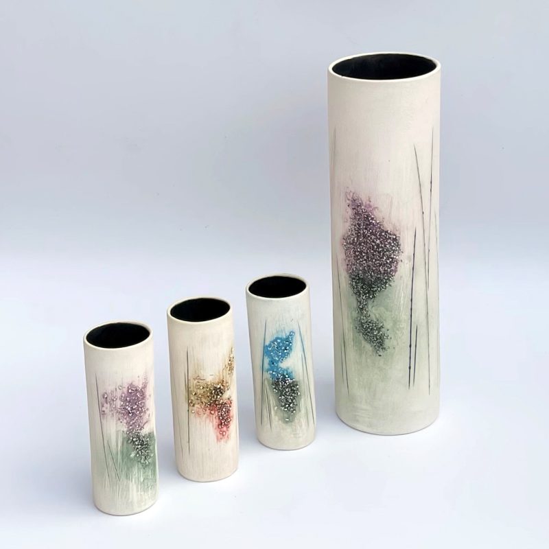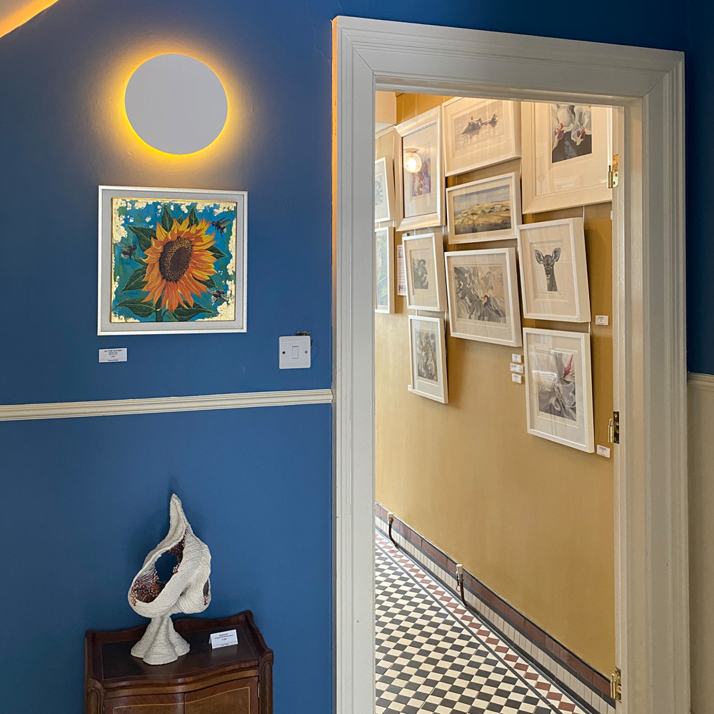 We are excited to be opening our Victorian House once more, to celebrate the creativity of our artists. The work on display varies widely in style and medium, while often retaining a natural or botanical element. Our exhibition is curated throughout the ground floor of the house and out into the garden, to allow you to experience art in a relaxed and calm environment whilst enjoying cakes baked by Jenny. Our new artists this year are MegaLilyDesign who creates botanical linoprints and Louise Erskine with her watery landscapes.