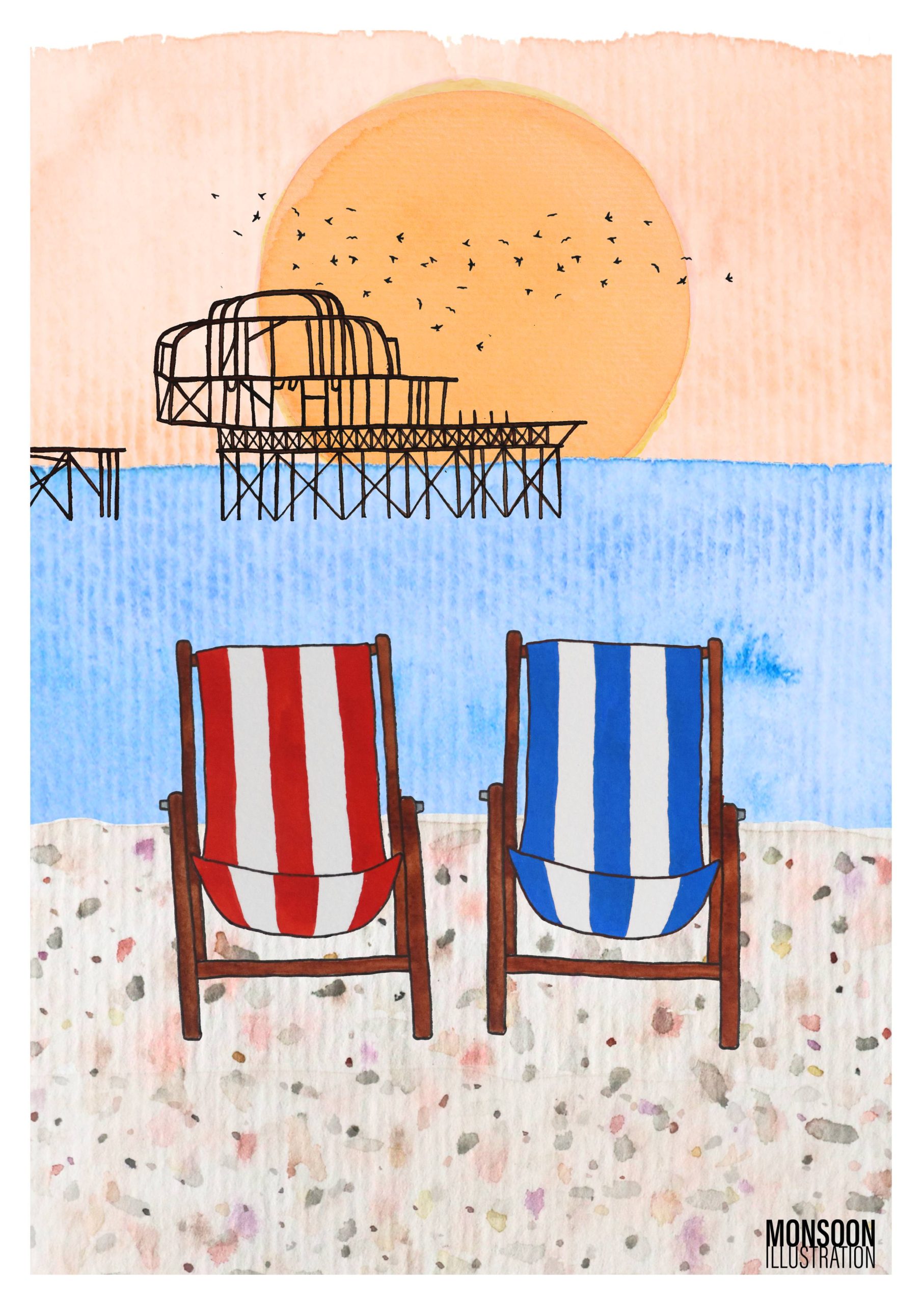 Opening her house for the first time, Tessa is showing a mix of illustrations, paintings and clay works. Her illustrations capture Brighton’s familiar landmarks in a whimsical and charming way. Each piece is drawn by hand, painted with watercolours, and then digitalised.