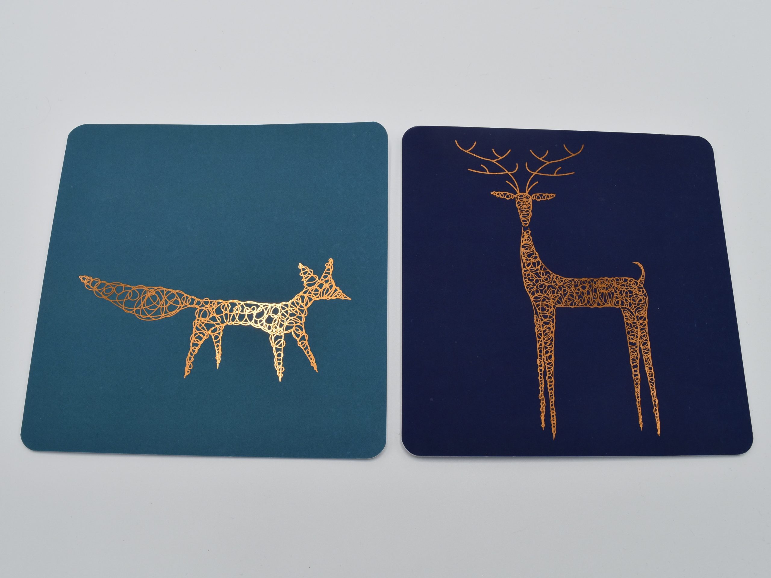 Seablue studio interior with reindeer sculptures and ceramic tree decorations